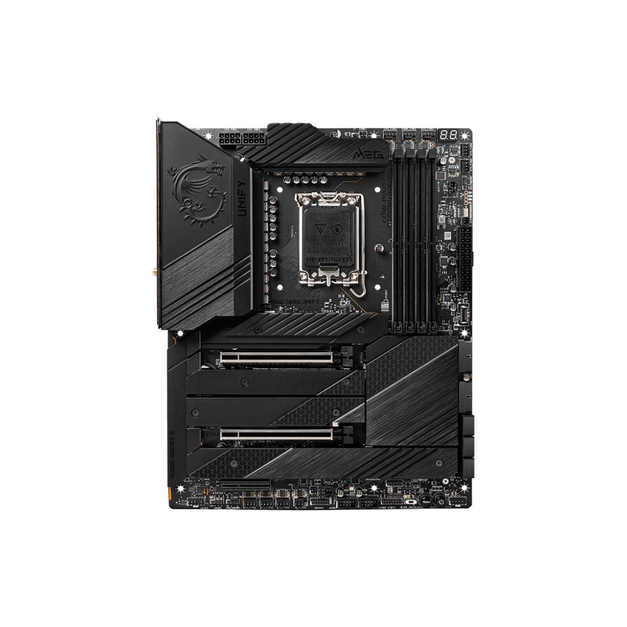 اماسای یکی از برندهای پرآوازه در عرصه تولیدات قطعات و محصولات الکترونیکی در جهان است. در بخش مادربرد هم این شرکت محصولات متنوع و باکیفیتی را روانه بازار کرده است که مادربرد MEG Z690 UNIFY یکی از آنها است. همانطور که از نام این مادربرد پیداست، مناسب برای آن دسته از کاربرانی است که میخواهند مادربرد قدرتمندی داشته باشند تا در اجرای برنامههای سنگین بازیهای بهروز عملکرد خوبی داشته باشد. در ساخت Z690 UNIFY از خنک کنندههای قدرتمند، سبب شده تا در شرایط ترافیک کاری تاثیر بالایی در جلوگیری از افزایش دما داشته باشند و در نتیجه خروجی عملکرد بسیار خوب و طول عمر مفید طولانی و قابل قبولی را شاهد باشید. مادربرد Z690 UNIFY به چیپست Z690 شرکت اینتل مجهز شده است که بدون شک عملکرد بسیار خوبی را ارائه میکند. چهار اسلات رم از نوع DDR5 مجهز شده که توانایی پشتیبانی از حداکثر میزان حافظه 128 گیگابایت را دارد. لازم به ذکر است که این مادربرد توانایی پشتبانی از پردازندههای نسل 12 اینتل را دارند. در پنل پشتی هم درگاههای متعدد و متنوعی در نظر گرفته شده که امکان اتصال آسان با دستگاههای دیگر را فراهم کرده است.