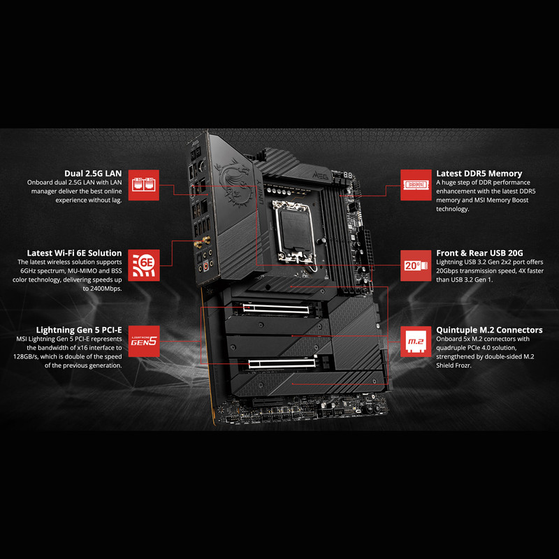 Latest DDR5 Memory: A huge step of DDR performance enhancement with the latest DDR5 memory. Combines with dedicated SMT welding process and MSI Memory Boost technology, it is ready to deliver the world class memory performance.